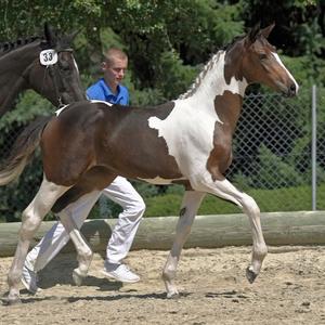 Aussergewöhnlicher gekörter Rappscheckhengst mit grossem Springvermögen. Sein Vater, der gekörte Trakehner Pinto Hengst Camaro, hat sich sich mehrfach für das Bundeschampionat qualifiziert und weist Sporterfolge bis Klasse M in der Vielseitigkeit und im Springsport aus. Zweimal konnte er sich in der Vielseitigkeit beim Bundeschampionat weit vorne platzieren. Die Mutter, Verbandsprämienstute Indian Dream, ist vom holländischen Scheckhengst Ico, welcher vom KWPN Keur Preferent Trakehner-Hengst Marco Polo abstammt.